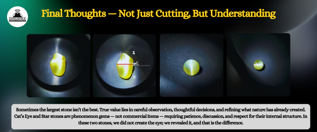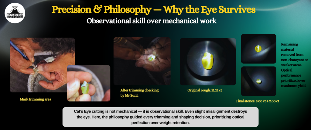 This is why Cat’s Eye cutting is not mechanical work — it is observational skill.