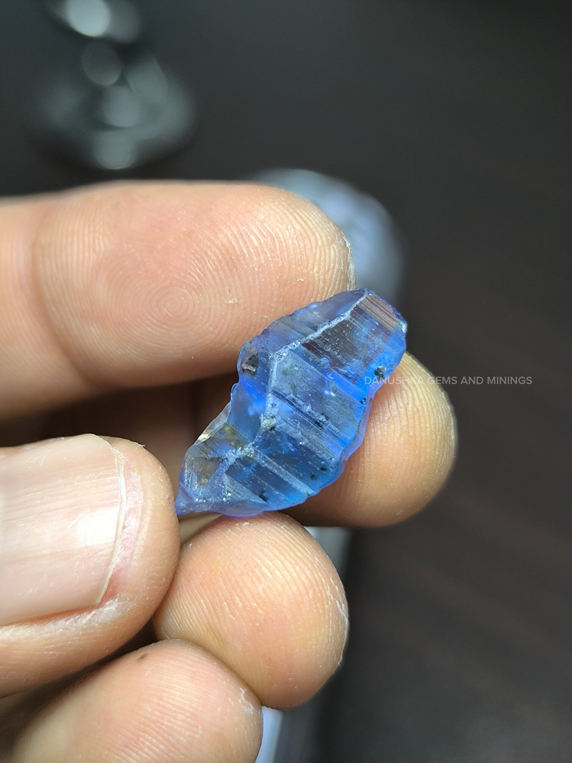 This 12.55 ct natural blue sapphire crystal from Kahawatta village in Sri Lanka is a true gift from nature. With its impressive size and beautiful cornflower blue hue, this untreated and unheated sapphire crystal, measuring 22.5 x 11.4 x 5.5 mm, is an ideal collector’s piece or a unique centerpiece for high-end jewelry. Mined directly from the gem-rich lands of Ceylon, it showcases exceptional natural structure and charm.