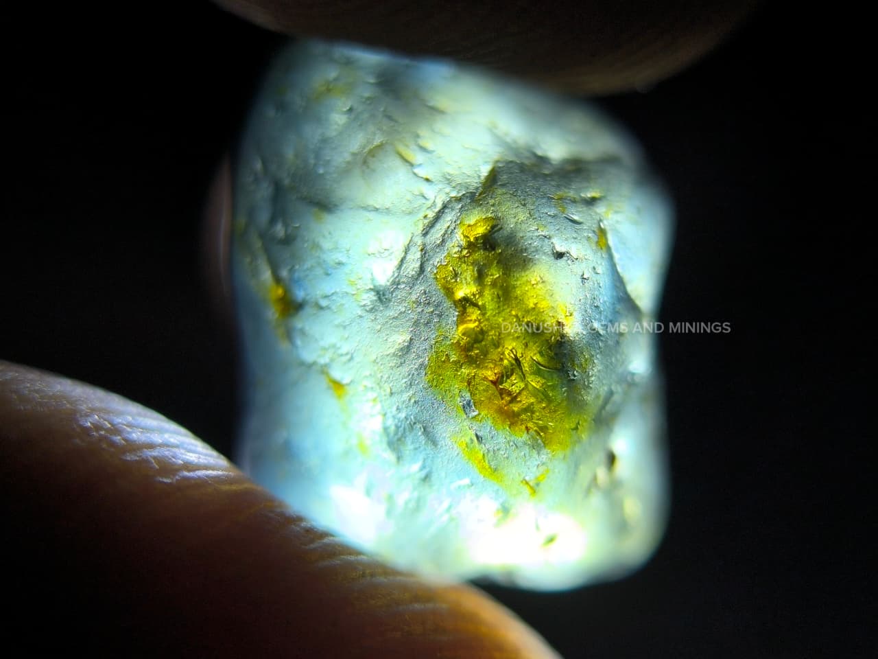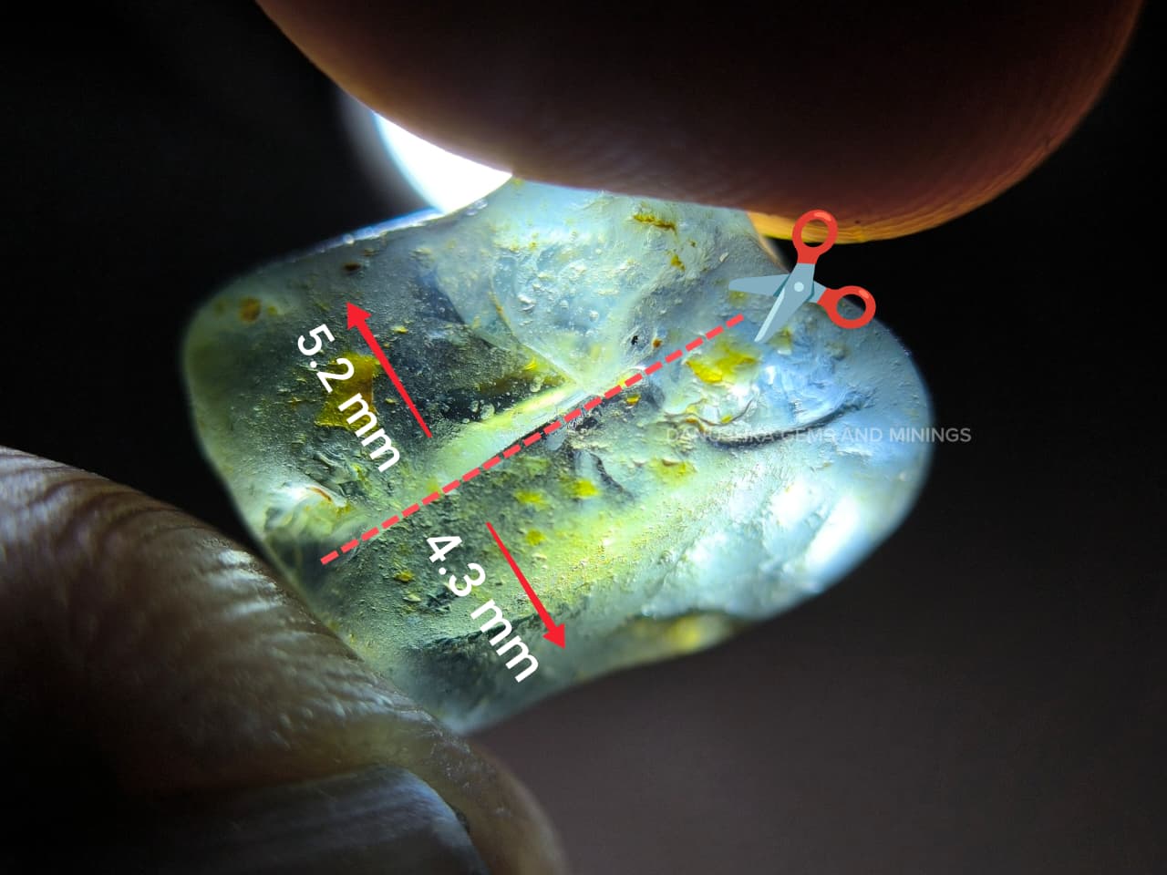 The center requires trimming, which allows the possibility of creating two separate stones with good yield and balanced proportions. For cutters who understand planning and orientation, this piece offers strong potential.