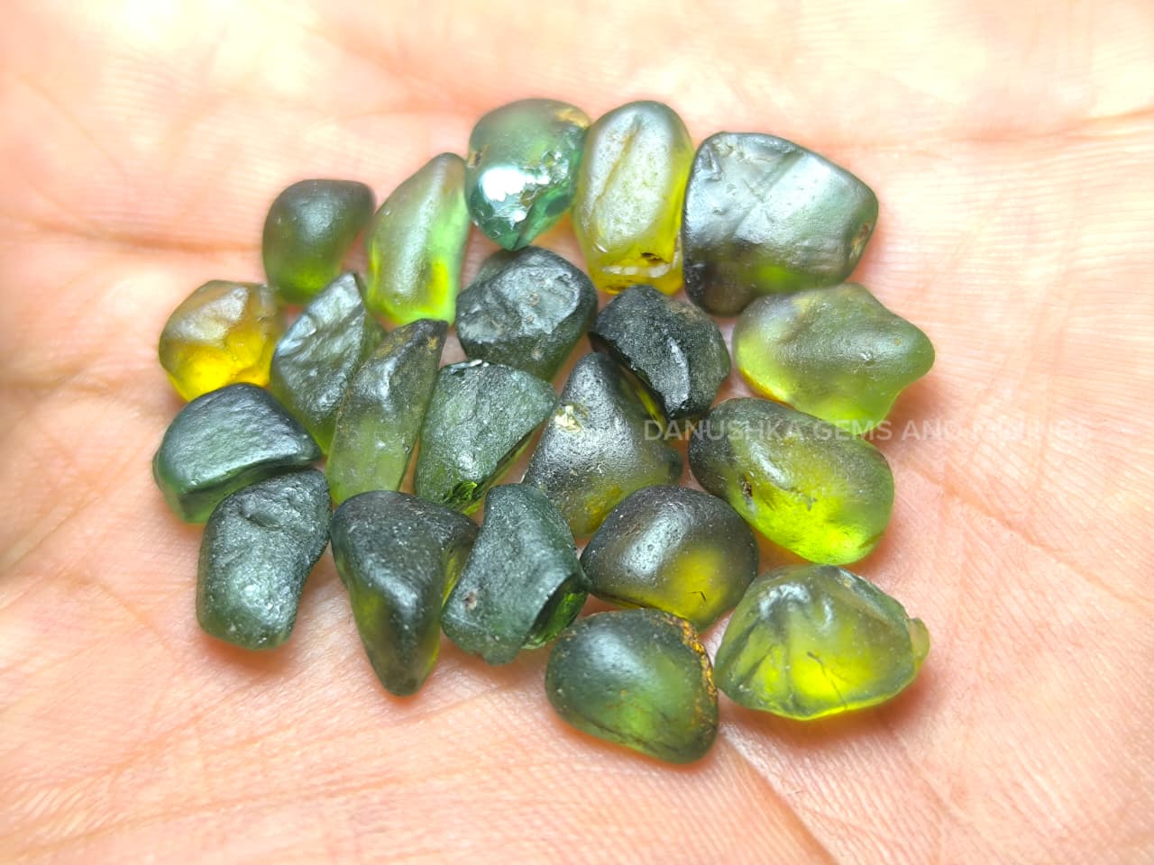 From Sri Lanka’s gem lands — a natural 21-piece Green Zircon collection, totaling 71.50 carats of pure facet-grade brilliance. These unheated roughs show fresh green tones with fine clarity and excellent luster, ready for precision faceting. Each stone is hand-selected for quality and balance, directly from the alluvial mines. A perfect find for gem cutters and natural zircon enthusiasts.