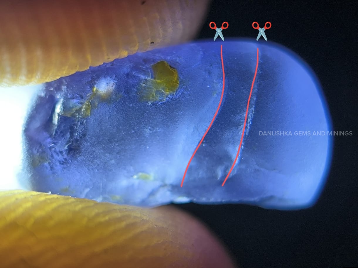 Under light and movement, this 5.00 ct Facet Grade unheated Ceylon sapphire rough reveals a gentle transition from blue to violet tones. Measuring 11.55 × 6.5 × 6.1 mm, the stone originates from Kuruwita village around mining in Sri Lanka. A visible central feather inclusion is present, requiring trimming during pre-form, but the remaining material shows good structure and cutting potential. Whether planned for a single statement stone or divided into two faceted gems, this sapphire offers honest natural character and clear origin for experienced cutters.