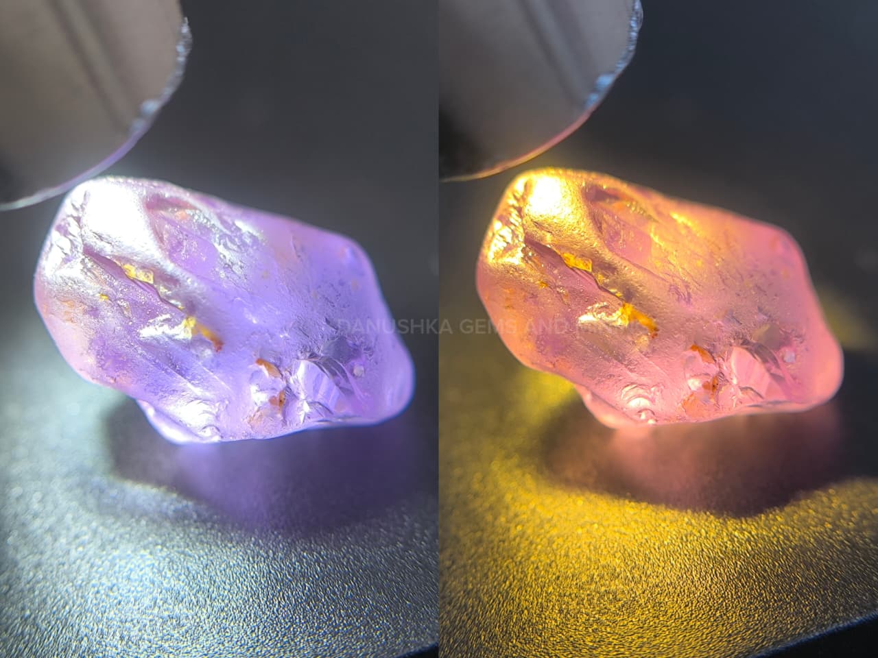 This 11.50 ct Ratnapura sapphire rough shows a beautiful natural purple-to-pink color shift, revealed clearly under changing light. Unheated and left exactly as mined, the crystal retains its natural surface and internal character. With solid dimensions and depth, this piece offers promising faceting potential for cutters who appreciate color behavior and natural formation.
