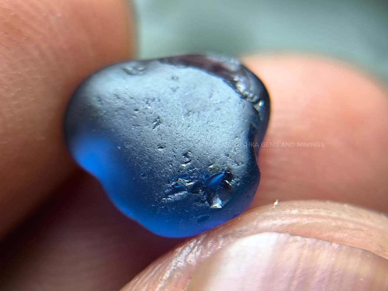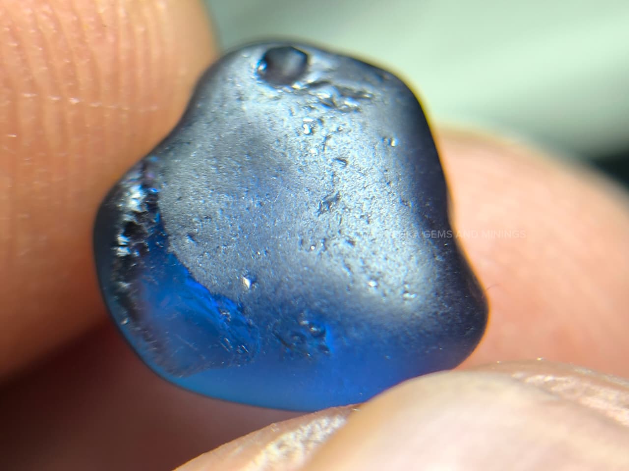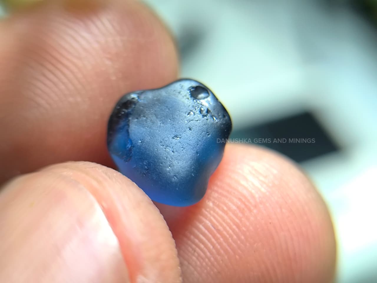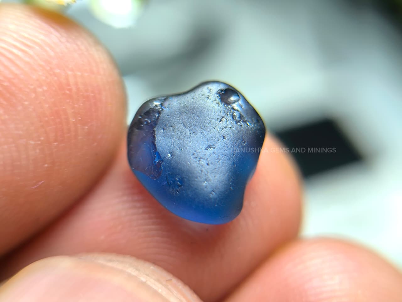 The surface displays natural water-worn alluvial textures formed during its geological journey through Sri Lanka’s gem-bearing river gravels. Internally the stone appears relatively clean for rough sapphire material, with only minor natural features visible under magnification.
