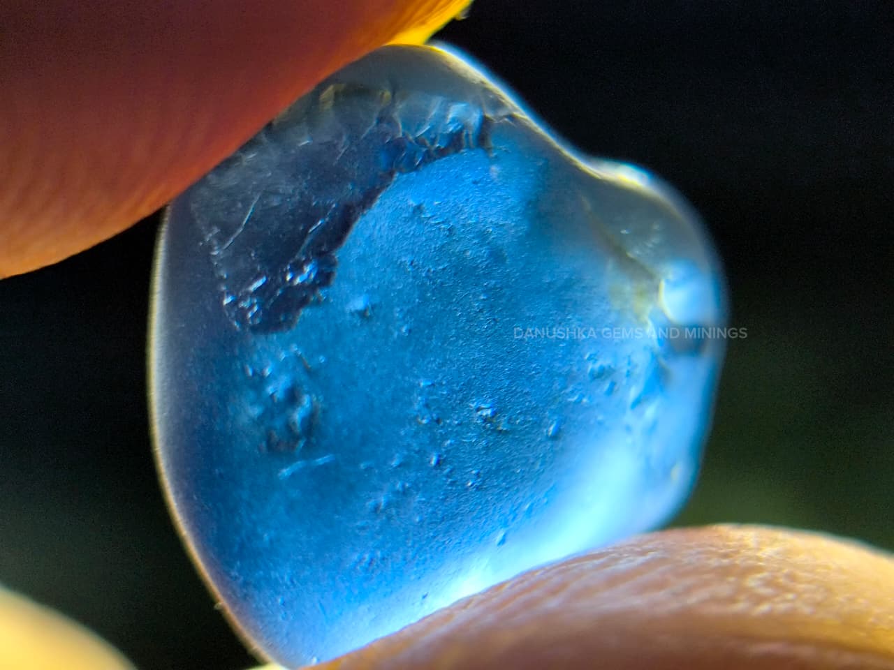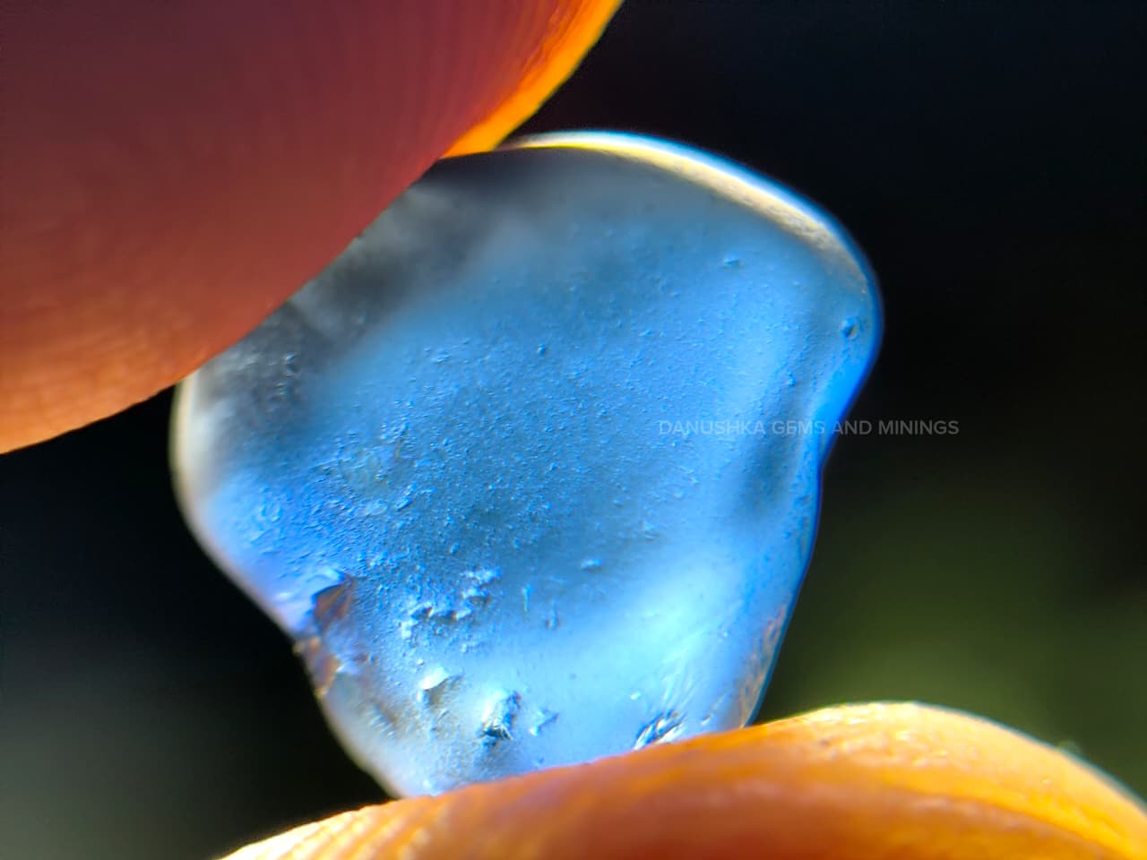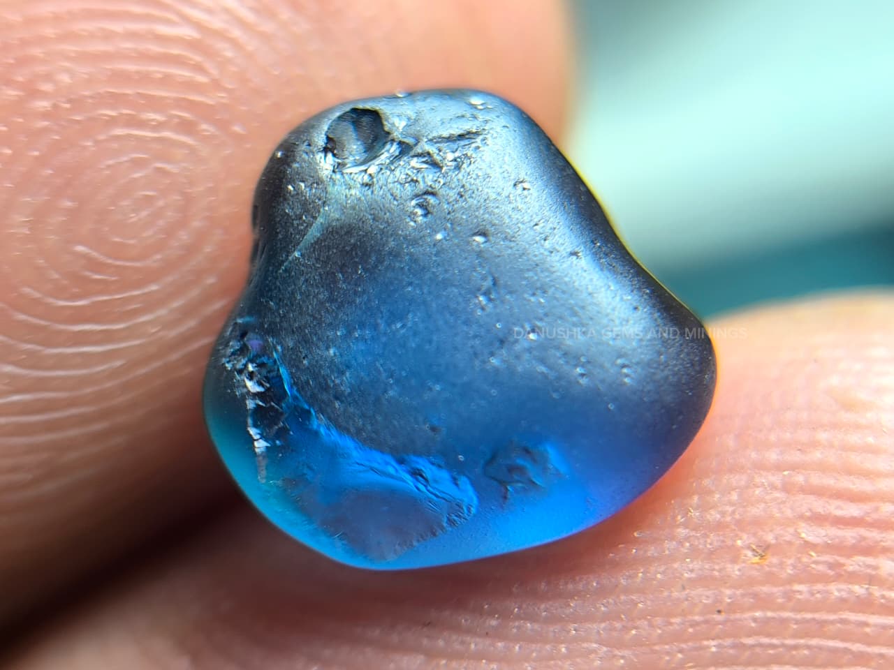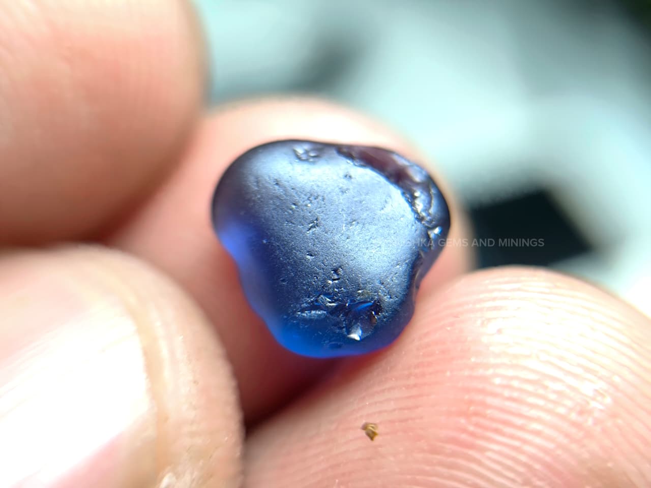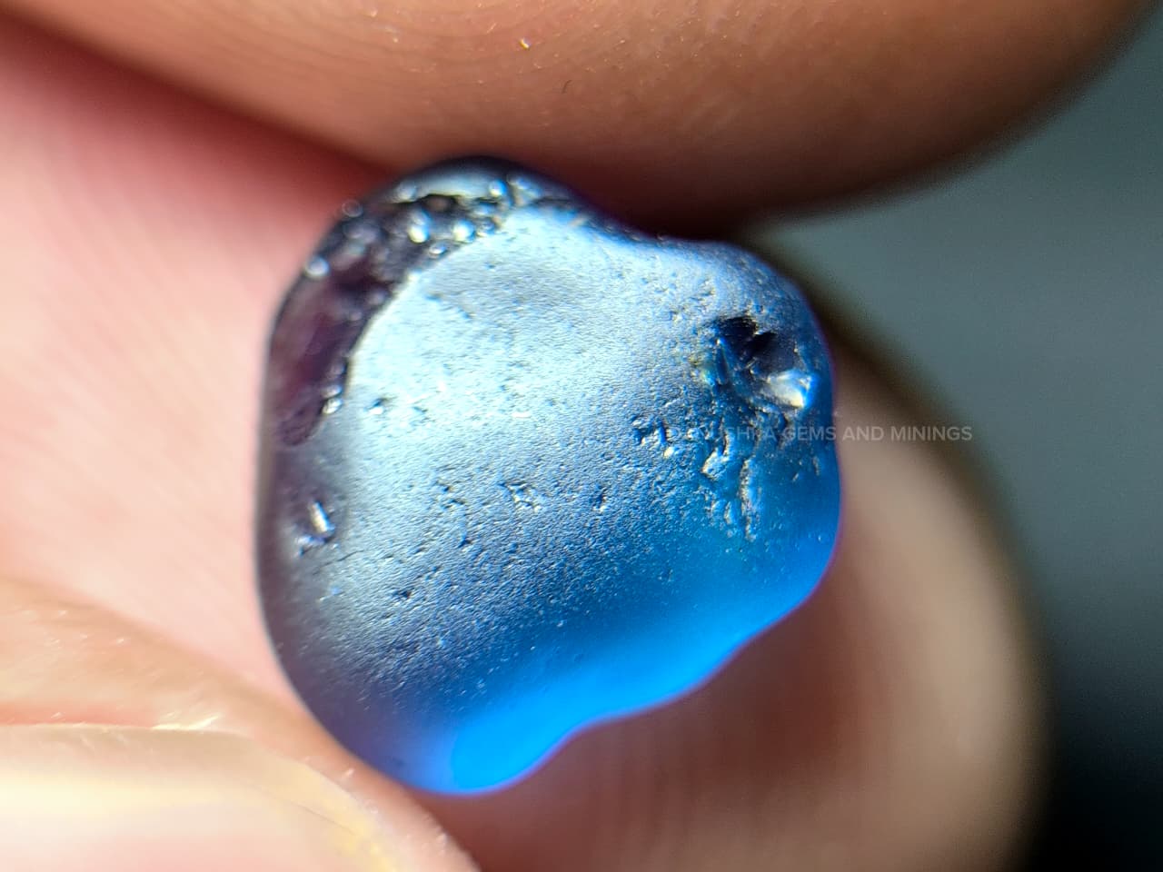 The surface displays natural water-worn alluvial textures formed during its geological journey through Sri Lanka’s gem-bearing river gravels. Internally the stone appears relatively clean for rough sapphire material, with only minor natural features visible under magnification.