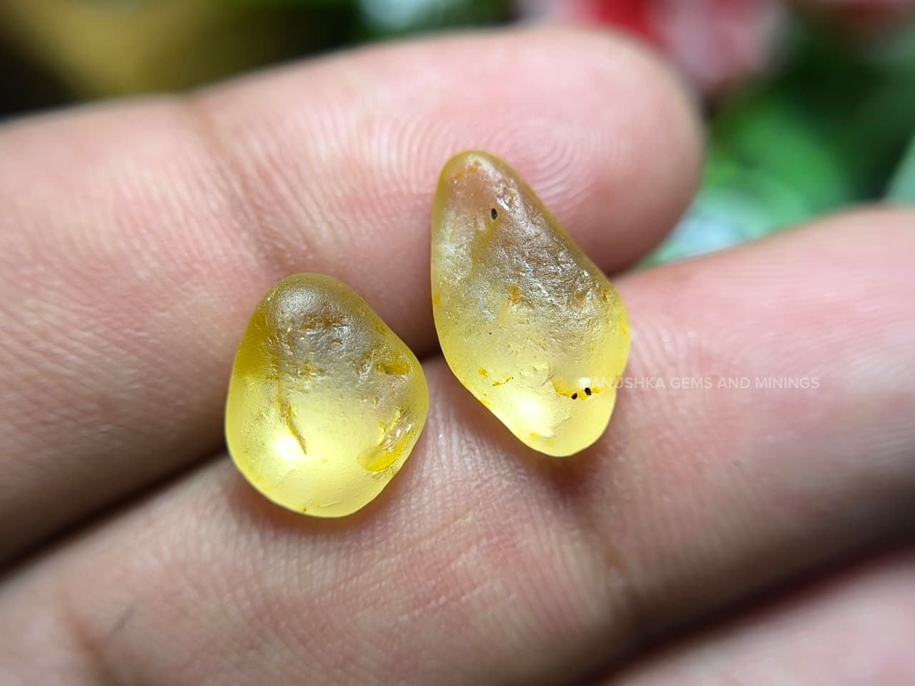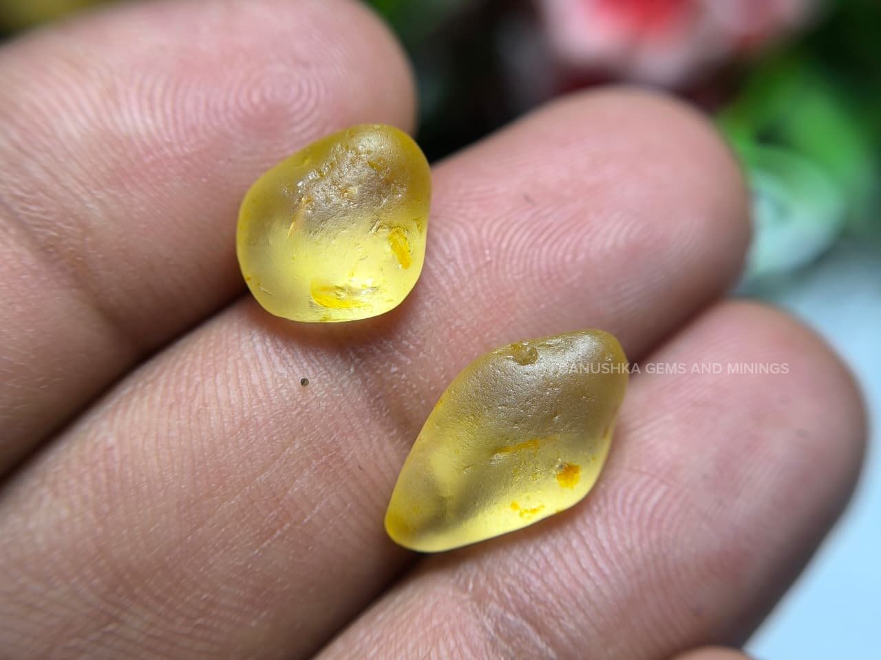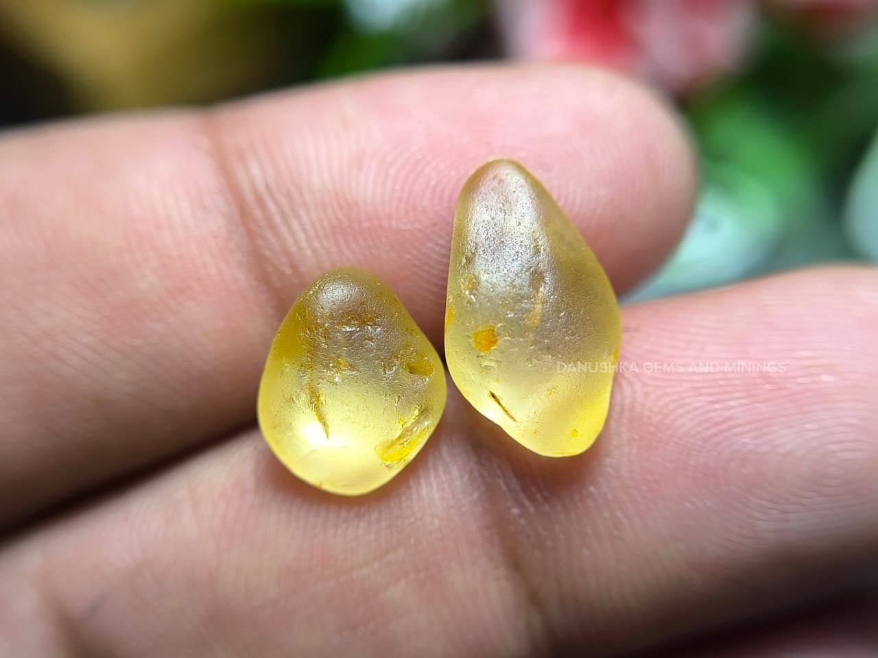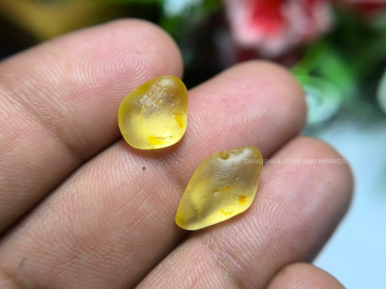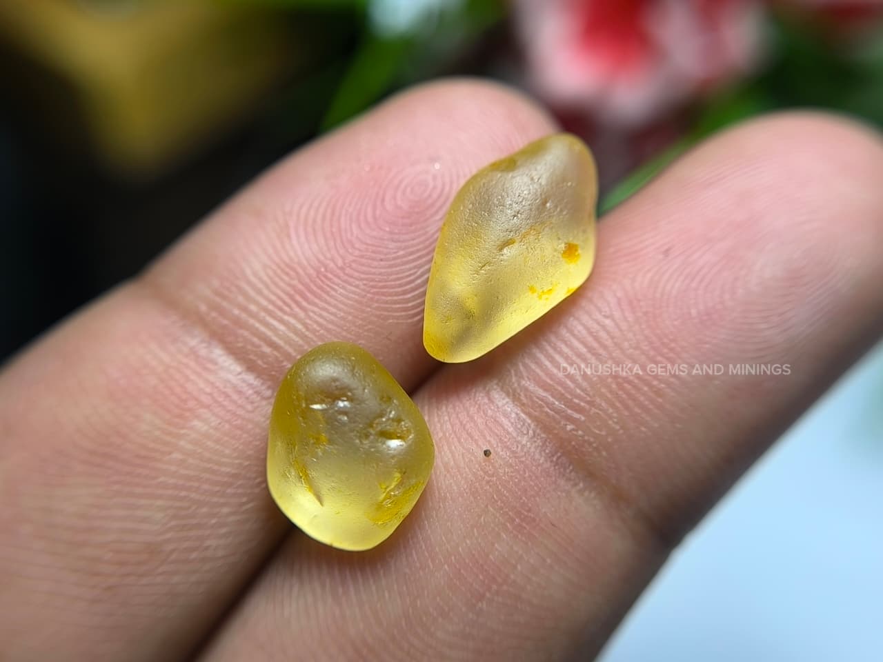 Weighing 5.86 ct and 6.32 ct, these facet-grade rough stones show soft natural color, smooth river-worn surfaces, and strong potential for clean faceted results.
