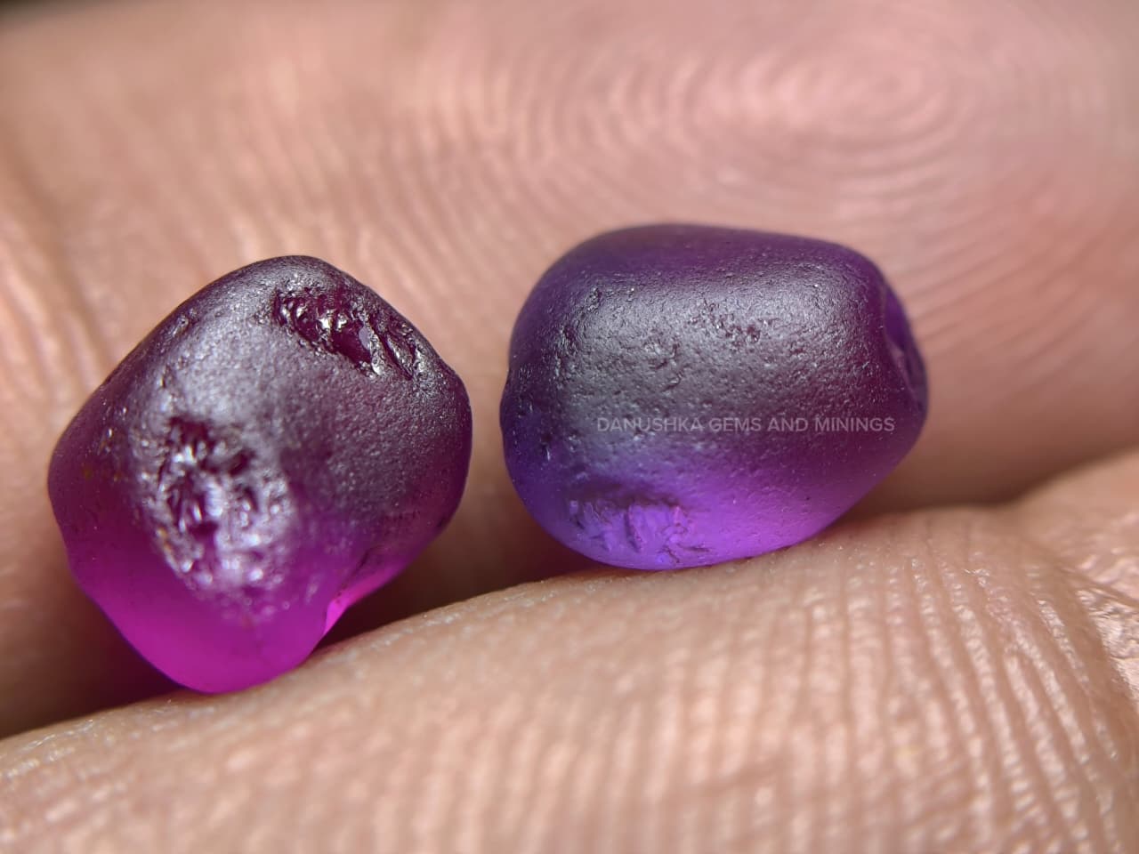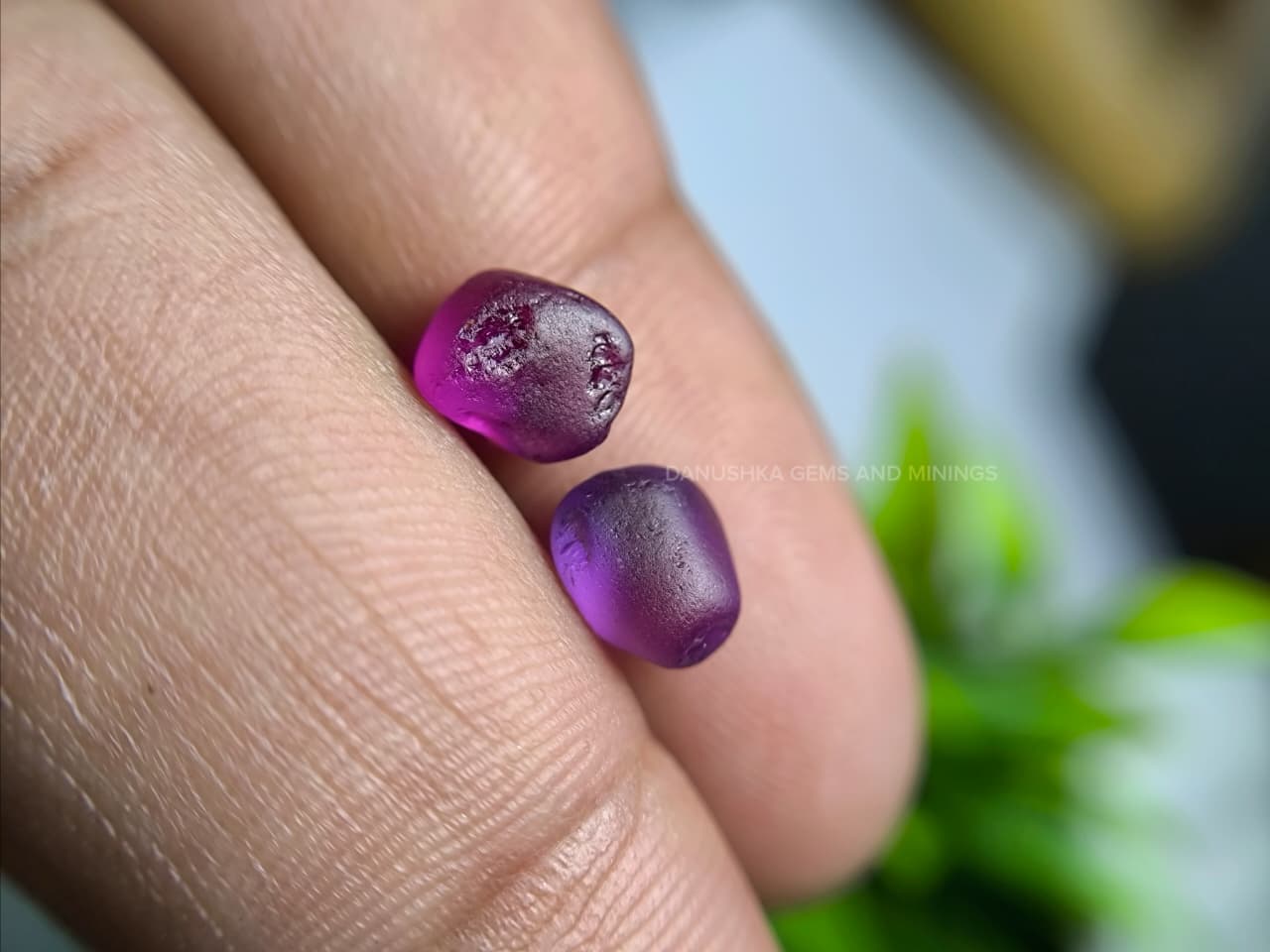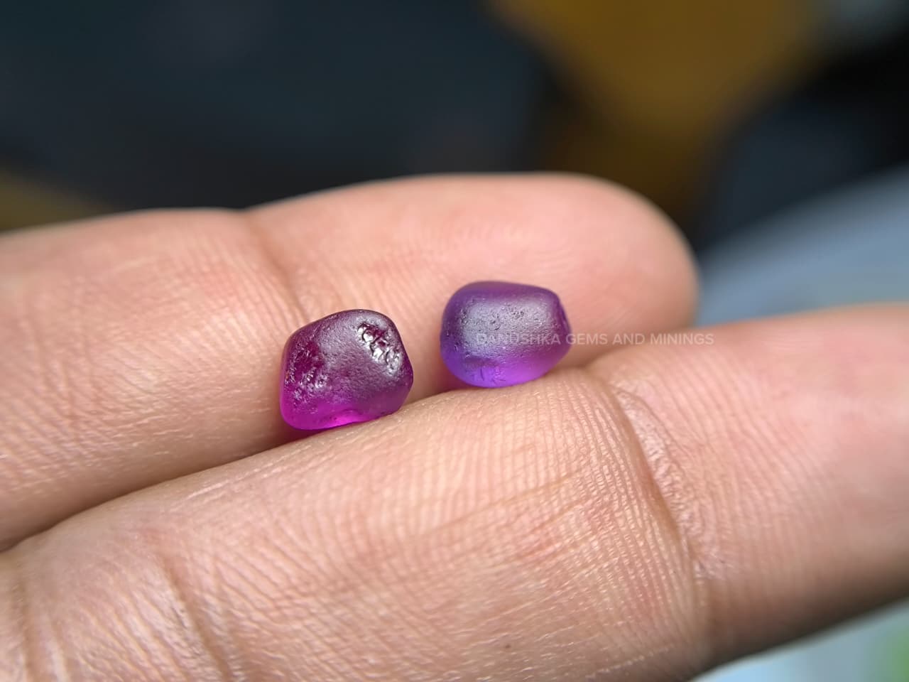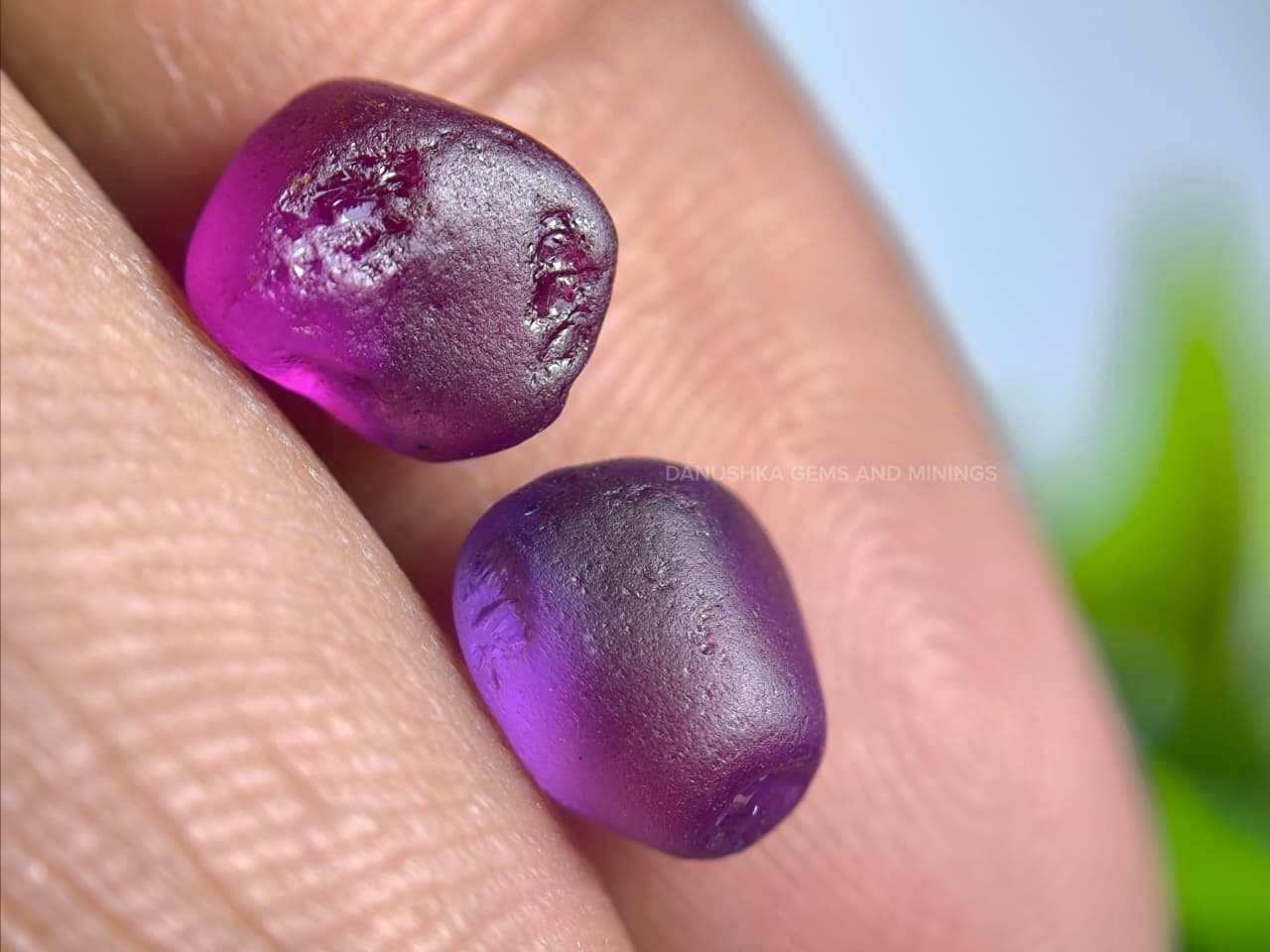 Natural Unheated Ceylon Sapphire Rough Pair – 2.27 ct Purple & 2.18 ct Vivid Pink from Kalawana Village, Sri Lanka