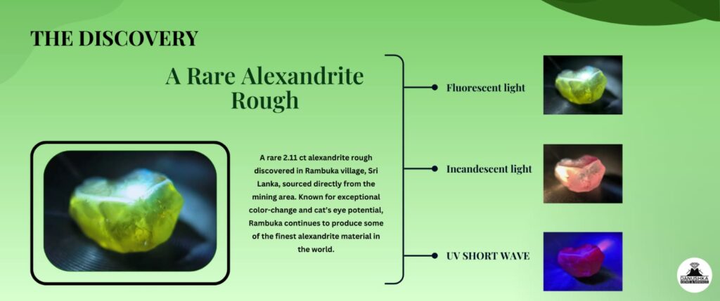 Sri Lanka has long been respected as one of the world’s most important gemstone sources, not only for sapphires but also for rare and extraordinary stones such as alexandrite and alexandrite cat’s eye. Among the country’s many mining regions, Rambuka village holds a special reputation for producing some of the finest alexandrite material, including highly prized chatoyant varieties.